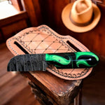 The Bull Cutter Knife - Castrating Knife is designed for precision, durability, and ease of use. This custom handmade tool boasts a 7.2-inch full tang design, ensuring balance and control. The 3.5-inch Damascus steel blade delivers exceptional sharpness and strength, making it an ideal choice for ranch work or other precision tasks. The ergonomic epoxy resin handle offers a comfortable and secure grip, even during prolonged use. Paired with a stylish and functional Western-style sheath, this knife is not only practical but also a striking addition to your collection.