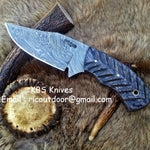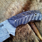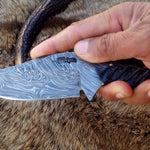 • Damascus Steel Blade: The 4.25-inch blade is made from high-quality Damascus steel, known for its superior sharpness, durability, and the distinctive wavy pattern that makes each blade unique. Perfect for precise field dressing and skinning.
