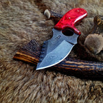 The Custom Damascus Steel Field Dressing Deer Skinning Knife offers superior precision and craftsmanship, making it an essential tool for hunters. With a total length of 7.5 inches, this knife features a 3.5-inch drop point blade made from high-quality Damascus steel, known for its sharpness, durability, and unique wavy pattern. The blade also includes a convenient finger hole for enhanced grip and control during delicate skinning tasks. The handle is crafted from exotic Pakka wood, providing a comfortable, ergonomic grip while adding a touch of natural elegance.