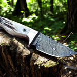 Custom Damascus Steel Field Dressing Knife with Antler Horn Handle