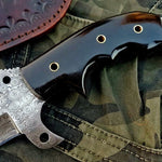 - Custom Handcrafted Tracker Knife with full tang Damascus Steel blade and tanto tip