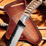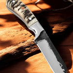 The Bull Cutter knife is a versatile and expertly crafted tool, perfect for precision tasks. This custom handmade knife features a compact 7-inch overall length with a 3.1-inch full tang high-carbon steel blade designed for strength and lasting sharpness. The handle is made from genuine sheep horn with a polished steel bolster, providing a comfortable grip and a classic look. For added convenience, this knife comes with a durable leather sheath for safe carrying and storage, making it an excellent addition to any knife collection.