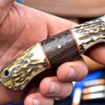 Custom Handmade D2 Steel Hunting Knife with Antler Handle