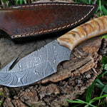 Custom Handmade Damascus Steel Guthook Skinning Knife