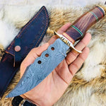 Designed for those who appreciate craftsmanship and functionality, this Custom Handmade Hunting Knife is the ultimate tool for any outdoor enthusiast. Featuring a 6-inch full tang Damascus steel blade, this knife offers exceptional durability, edge retention, and a unique pattern that sets it apart. The 10.5-inch overall length provides a balanced and powerful grip, while the walnut wood handle with a brass guard ensures both comfort and elegance. Each knife includes a high-quality leather sheath for safe and convenient storage, making it an ideal companion for hunting and camping adventures.