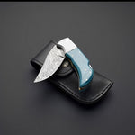 Damascus Knives for Sale | Custom Handmade Damascus Steel Pocket Knife with Turquoise Epoxy Handle | 2.5-Inch Blade by KBS Knives