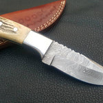 Deer Skinning Knife Custom Handmade Full Tang Damascus Steel with Antler Horn Handle, 8-inch - The Horncrest