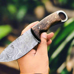 Deer Skinning Knife Custom Handmade Full Tang Damascus Steel with Walnut Wood Finger Hole Handle, 8.5-inch - The Walnutblade