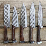 Introducing our 5-Piece Kitchen Knives Set, a culinary ensemble that seamlessly combines elegance with precision. Crafted for both amateur cooks and seasoned chefs, this set showcases the beauty of Rosewood handles and the exceptional cutting performance of forged Damascus steel blades. Here are the standout features: