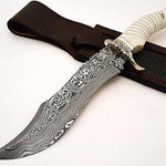 - Damascus Steel Bowie Knife with Bone Handle