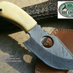 Custom Handmade Damascus Finger Hole Skinning Knife