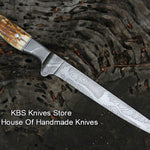 Fishing Fillet Knife – 8" Damascus ELK Horn Handle