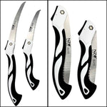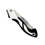 Double action razor tooth folding saw. Includes a high carbon steel blade and soft comfort handle. Excellent tool around the campsite. Offered in both 7-inch and 10-inch length blade.