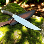 The Frontier Legend Western Bowie Knife is a custom handmade masterpiece that embodies the spirit of the Old West. With an overall length of 17 inches and a powerful 12-inch D2 steel blade, this knife is built for heavy-duty outdoor tasks. Whether you’re hunting, camping, or tackling wilderness survival, the Frontier Legend delivers unmatched strength and reliability.
