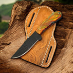 Unleash your inner cowboy with our custom handmade cowboy knives and sheaths. Crafted for durability and style, this knife boasts a full tang rasp tool steel blade, measuring 4.25 inches, perfect for precision and strength. The handle is constructed from epoxy resin with a powder-coated finish, ensuring a secure grip and a sleek, modern look. Complete with an authentic Western-style sheath, this 8.5-inch knife combines functionality with a touch of rugged elegance.