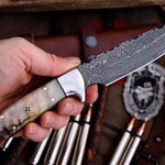 Handcrafted Deer Hunting Knife with Damascus Steel & Sheep Horn Handle