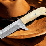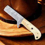 Handmade Bull Cutter - Damascus Steel Blade & Bone Handle