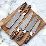 Experience the artistry of cooking with this custom 5-piece Damascus steel Custom knife set!