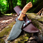 Handmade Tom Brown Tracker Knife with Damascus Steel Blade & Olivewood Handle – 10" Overall Length