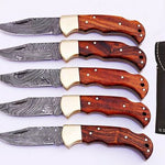LOT OF 5 HANDMADE DAMASCUS STEEL FOLDING KNIVES