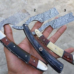 Experience the charm of yesteryears with our collection of three distinct variants of Vintage Straight Razors, each featuring a precision-crafted Damascus Steel Blade. These exquisite razors, available exclusively at KBS Knives Store, combine timeless craftsmanship with unique handle materials to offer a shaving experience like no other.