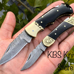 Looking for a pair of high-quality and stylish EDC folding pocket knives? Check out this pair of Custom Handmade Damascus Steel EDC Folding Pocket Knives with Leather Case by KBS Knives Store. These knives feature a stunning blade made of high-quality Damascus steel, with a length of 3 inches and 2 inches respectively, making them perfect for everyday carry. The handles are made of buffalo horn and brass bolsters, adding to the elegance of the knives. They come with a leather case for safe and convenient storage, making them great gift ideas for Father's Day, Mother's Day, anniversaries, or as a groomsman gift. Order this pair of knives today and experience the beauty and functionality of these remarkable knives.
