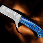 Premium Damascus Bull Cutter Knife - 7" Hand Forged Steel with Exotic Blue Wood Handle