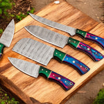 Premium Damascus Kitchen Knife Set - Handmade 5-Piece Collection