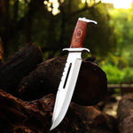 Combat-Grade Construction: Precision-forged from premium D2 tool steel, this Rambo bowie knife delivers outstanding toughness and edge retention essential for tactical operations. The blood groove reduces blade weight while maintaining structural integrity, creating perfect balance for rapid deployment. The exotic red wood handle is carefully selected for its density and striking appearance, then fitted with robust steel guards.