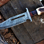 Rambo Knife for Sale - Custom Handmade Damascus Bowie with Rose Wood & Antler Horn