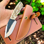 Sharpest Skinning Knife with Antler Horn Handle & Leather Sheath – Whitetail Hunter’s Edge –