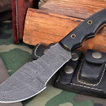 Each Knife from The Hunted is custom handmade, so every blade will have unique Damascus patterns and slight variations in handle texture—making each knife one of a kind.