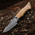 Damascus Steel Blades: This hunting knife boasts Damascus Steel Blades, known for their exceptional sharpness, durability, and exquisite patterns. They ensure superior cutting performance for various outdoor tasks.