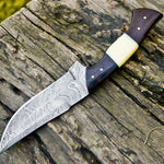 Introducing the Best Hunting Knife, a testament to craftsmanship and performance, designed to elevate your outdoor pursuits. This exceptional knife boasts a Full Tang Damascus Steel Blade, a handle masterfully crafted from Bone and Wenge Wood, and is available exclusively at KBS Knives Store.