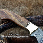 "Timber Strike" Custom Handmade Damascus Fixed-Blade Hunting Knife, 9-Inch with Rosewood Handle | KBS Knives Store