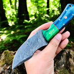 In the heart of the wilderness, where instincts reign supreme, the Timberwolf is the hunter’s silent companion. This Damascus hunting knife features a 4-inch razor-sharp Damascus steel blade, forged for precision and durability. The exotic wood handle provides a firm grip, blending beauty with rugged reliability. Whether field dressing game or preparing camp, Timberwolf is built to conquer the wild.