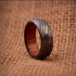 Timeless Bond Damascus Steel Anniversary Ring with Wooden Inlay by KBS Knives Store