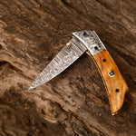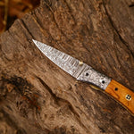 Elevate your collection with the Hand Engraved Custom Handmade Damascus Steel EDC Folding Pocket Knife by KBS Knives. This exquisite knife features a meticulously crafted 3-inch Damascus steel blade, known for its sharpness and distinctive patterns. The handle, made from rich Olive Wood, offers a warm, natural feel, while the hand-engraved steel bolster adds a touch of personalized elegance.