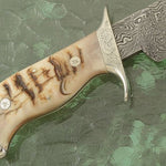 Hand Engraved Tennessee Bowie Knife - Custom Damascus Steel Blade, Ram Horn Handle, Hand Engraved Steel Guard and Bolster, 15" Overall Length | Leather Sheath | KBS Knives