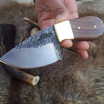 The Hand-Forged 1095 Tool Steel Field Dressing Deer Skinning Knife is a compact and reliable tool designed for hunters and outdoor enthusiasts. Measuring 6 inches in overall length, this knife features a 3-inch drop point blade made from durable hand-forged 1095 tool steel, ensuring exceptional sharpness and edge retention. The handle is crafted from rich rosewood, complemented by a sturdy brass bolster, providing both comfort and style. Perfect for field dressing and skinning tasks, this knife is a must-have addition to any outdoor gear.