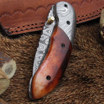 Handle Made Of Coloured Camel Bone And Damascus Bolster