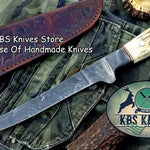 Handmade Damascus Steel Fillet Boning Knife with Antler Horn and Damascus Bolster Handle
