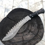Experience the power and heritage of the Damascus Tactical Kukri, a knife built for strength, precision, and tradition. With an overall length of 15 inches and a razor-sharp 10-inch Damascus steel blade, this kukri delivers both cutting performance and durability. The blade features the striking patterns of hand-forged Damascus steel, offering not only beauty but also superior edge retention.