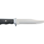 The IVO 10" hunting knife with serrations is a versatile tool for various outdoor and survival tasks. It is a valuable knife in a hunter or survivalist's kit, offering versatility for a wide range of tasks in the wilderness. The tip and plain edge of the knife is ideal for making precise cuts, slicing through meat, skinning game, and preparing food. The serrated edge is excellent for sawing through tougher materials like rope, tough plant material, and small branches. The serrations can also help cut through bones, joints, and cartilage when processing game.