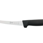 A 6" semi-flex curved boning knife is specifically designed for boning tasks, particularly when dealing with smaller cuts of meat, poultry, or fish. The semi-flexible blade allows for maneuverability and precision, making it ideal for tasks such as removing bones, cartilage, and skin from cuts of meat or poultry. The curved shape of the blade helps to navigate around joints and contours, enabling users to make clean and accurate cuts with ease. This type of knife is commonly used in processing plants, professional kitchens, butcher shops, and by home cooks who require a versatile tool for boning and trimming tasks.
