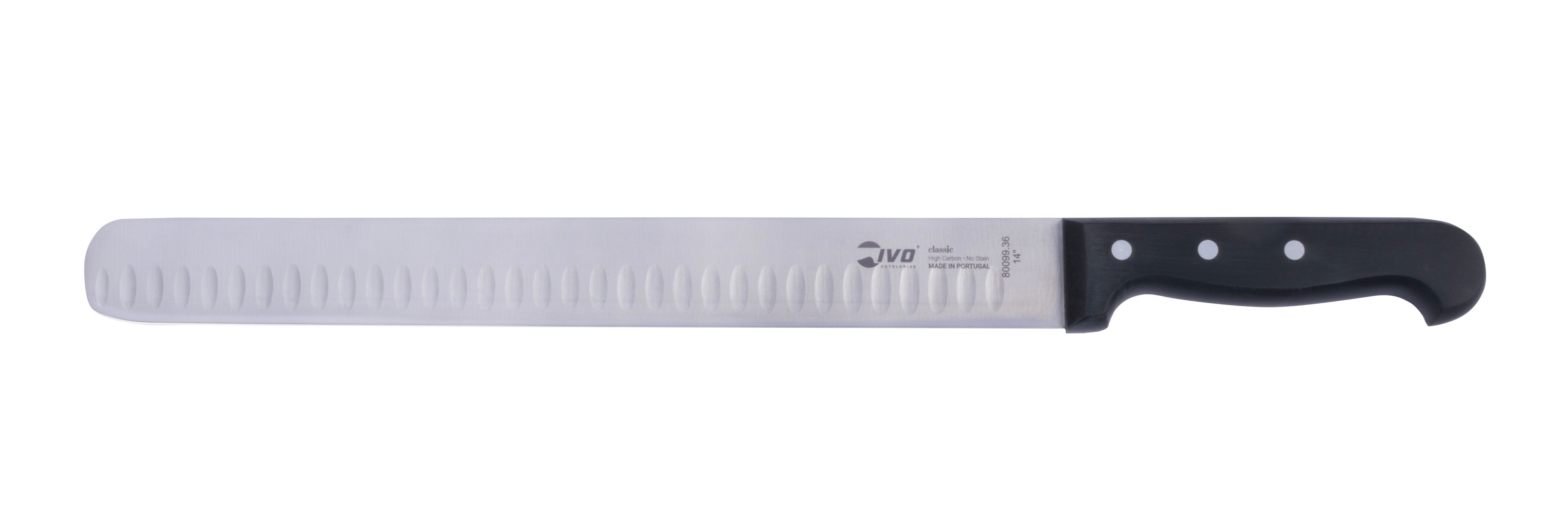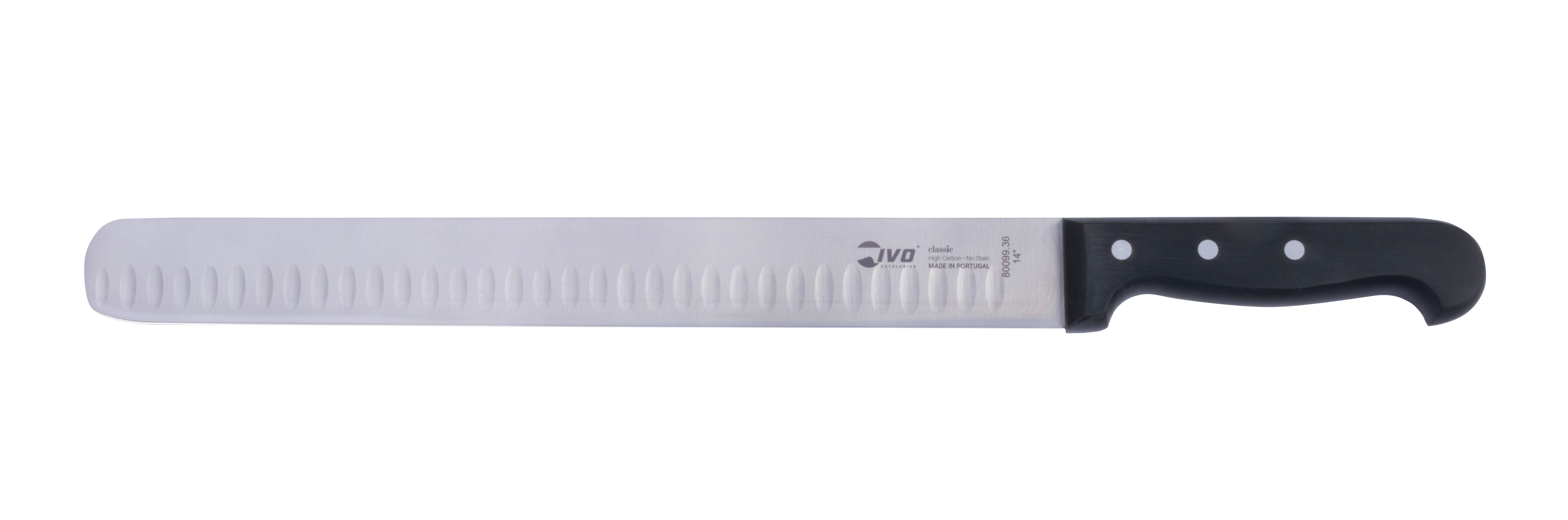 Attention all grill masters! Say hello to the IVO® Classic Plus 14" Extra-Wide Beef Slicer. This must-have slicer is built to last and expertly crafted for all your BBQ needs. Made with sturdy stainless steel and a timeless design, this knife guarantees top-notch slicing efficiency. The ergonomic handle, constructed from polyoxymethylene, guarantees optimal comfort and precision with each slice. And with its wide blade, you can expect flawless, straight cuts without any twisting. Elevate your BBQ skills with this essential tool for impeccable brisket slicing every time!