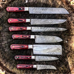 Elevate your culinary experience with the 7-Piece Kitchen Knives Set featuring Twist Damascus steel blades and handles crafted from exquisite Exotic Wood. This meticulously designed set isn't just an ensemble of knives; it's a statement of culinary artistry and refined taste.