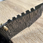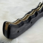 The Tactical Urban Guardian Folding Pocket Knife is built for everyday use and survival. Featuring a custom handmade 8-inch Damascus steel blade with a sharp edge, this folding knife offers strength and precision. The handle is crafted from exotic Pakka wood, providing both durability and comfort, and includes a convenient pocket clip. With a Rockwell Hardness of 55-60 HRC, this is a full working tool that excels in both utility and style. Comes with a leather sheath. Available at KBS Knives Store.