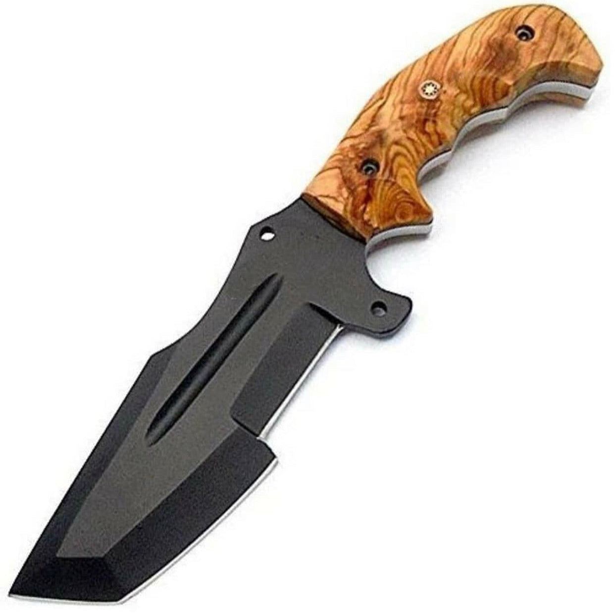 Handcrafted D2 Steel Acid Washed Blade Survival Knife with Burl Olive Wood Handle - 11 Inch Overall Length