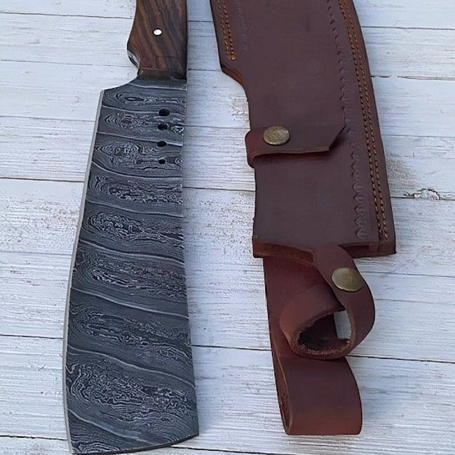 Rogue Cleaver - Custom Handmade Damascus Steel Cleaver Knife 12-Inch with Rosewood Handle | KBS Knives Store